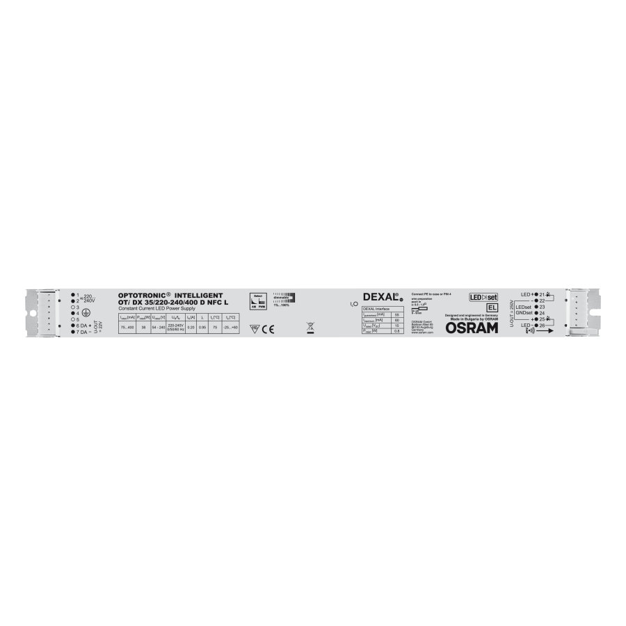 This is Constant Current LED Driver 38W 54-240V manufactured by Osram. The manufacturer part number is OTI-DX-35/220-240/400-D-NFC-L. Additionally, it has a/an led driver type LED driver . It carries 75-400ma output current. The product offers a maximum 38w output power . It is dimmable yes . Features a 54-240v output voltage. It allows to operate using constant current. Its input voltage is 220-240 v.