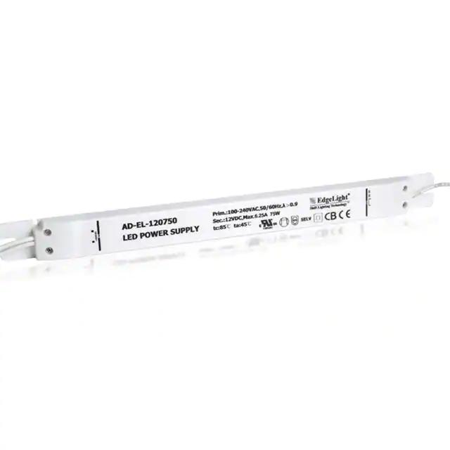 This is manufactured by Edgelight LLC. The manufacturer part number is AD-EL-1200750-B. It is rated with ip20. The product is rohs compliant. Moreover, it has wire leads terminal style. The product features power and watts of 75 w. The maximum product's output current is 6.25a. It is approved by cb, ccc, ce, culus, kc, pse, tuv. The product is available in chassis mount configuration. It offers 100vac of minimum input voltage. It comes in constant current configuration. Dimming Info: analog. It is a highly efficient product with an 92% of high efficiency. Its maximum input voltage is 240vac. Topology includes ac dc converter. It is shipped in case package . The product's diameters include 14.84" l x 1.18" w x 0.79" h (377.0mm x 30.0mm x 20.0mm). 3 kv of isolation voltage. The splendid features of the product include ocp, scp. The product has -20°c ~ 50°c operating temperature range. Furthermore, the output voltage is 12v. Additionally, the product is supplied with 1 outputs.