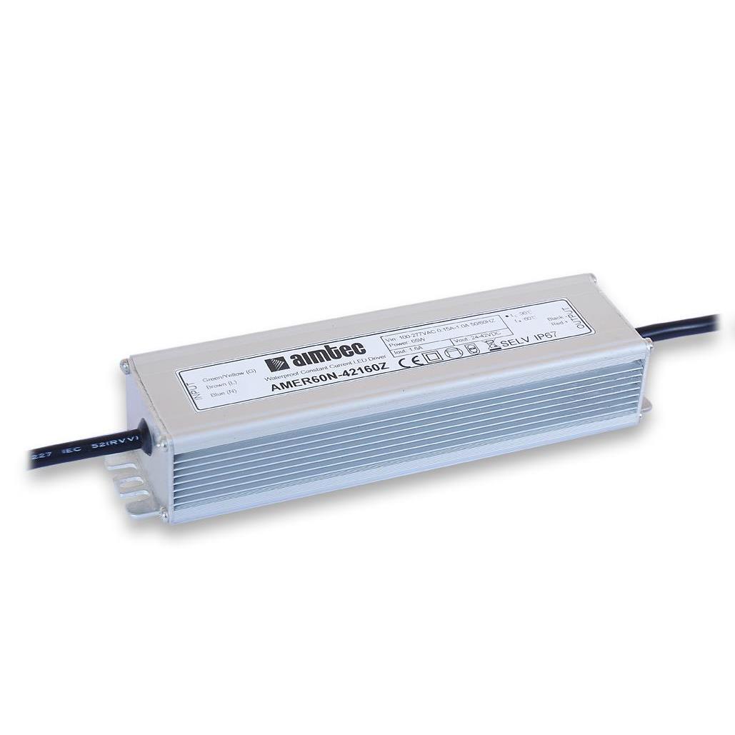 This is manufactured by aimtec. The manufacturer part number is AMER60N-42130Z. It is rated with ip65, ip67. It is assigned with possible HTSUS value of 8504.40.9520. The product is rohs3 compliant. Moreover, it has wire leads terminal style. The product features power and watts of 54.6 w. The maximum product's output current is 1.3a. The product is available in chassis mount configuration. It offers 90v of minimum input voltage. It comes in constant current configuration. It is a highly efficient product with an 87% of high efficiency. Its maximum input voltage is 305v. Topology includes ac dc converter. It is shipped in box package . The product's diameters include 1.91" l x 1.31" w x 7.36" h (48.6mm x 187.0mm x 33.3mm). 3.75 kv of isolation voltage. Its typical moisture sensitivity level is 1 (unlimited). The splendid features of the product include scp. The typical product's weight is 1.080 lb (490.00 g). The product amer60n-z, is a highly preferred choice for users. The product has -40°c ~ 60°c operating temperature range. Furthermore, the output voltage is 24 ~ 42v. Moreover, it corresponds to amer60, a base product number of the product. Additionally, the product is supplied with 1 outputs. The product is designated with the ear99 code number.