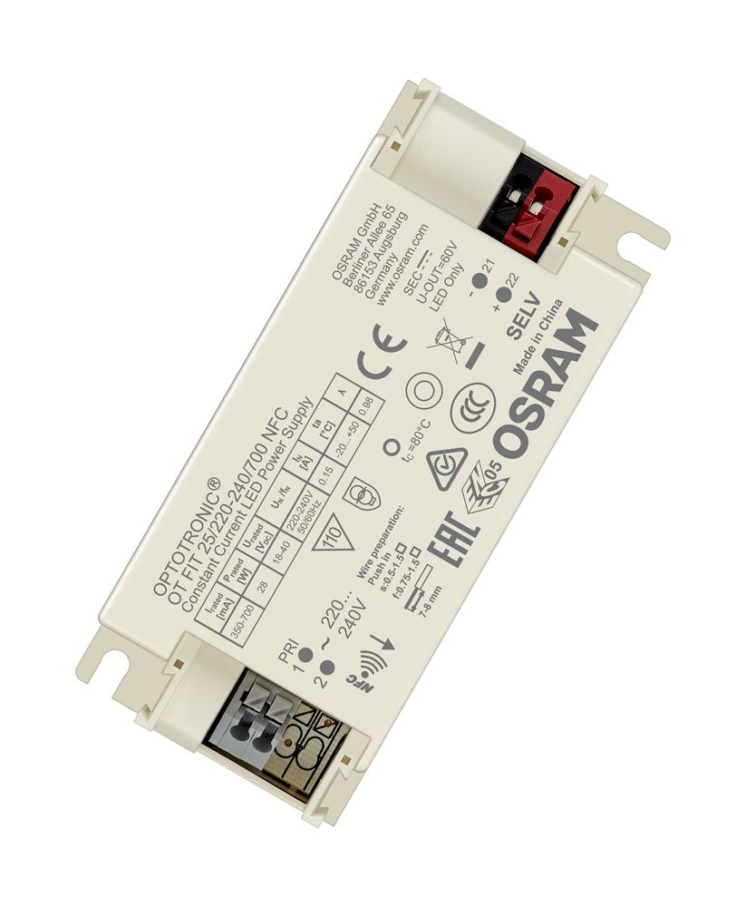 This is manufactured by OSRAM. The manufacturer part number is OT-FIT-25/220-240/700-NFC. Additionally, it has a/an led driver type LED driver . It carries 700ma output current. The product offers a maximum 28w output power . It is dimmable no . Features a 18 → 40v output voltage. It allows to operate using constant current. Its input voltage is 198 → 264 v. It is rated with ip20. The product is rohs compliant. Moreover, it has terminal block terminal style. The product features power and watts of 28 w. The maximum product's output current is 40a. It is approved by cb, ccc, ce. The product is available in chassis mount configuration. It offers 198vac of minimum input voltage. It comes in constant current configuration. It is a highly efficient product with an 89% of high efficiency. Its maximum input voltage is 264vac. The osram's product offers user-desired applications. Additionally, the product is supplied with 1 outputs. The product's diameters include 3.82" l x 1.69" w x 1.16" h (97.0mm x 43.0mm x 29.5mm). The splendid features of the product include scp. The product has -20°c ~ 50°c operating temperature range. Furthermore, the output voltage is 18v. In addition, tape & box (tb) is the available packaging type of the product. Topology includes ac dc converter.