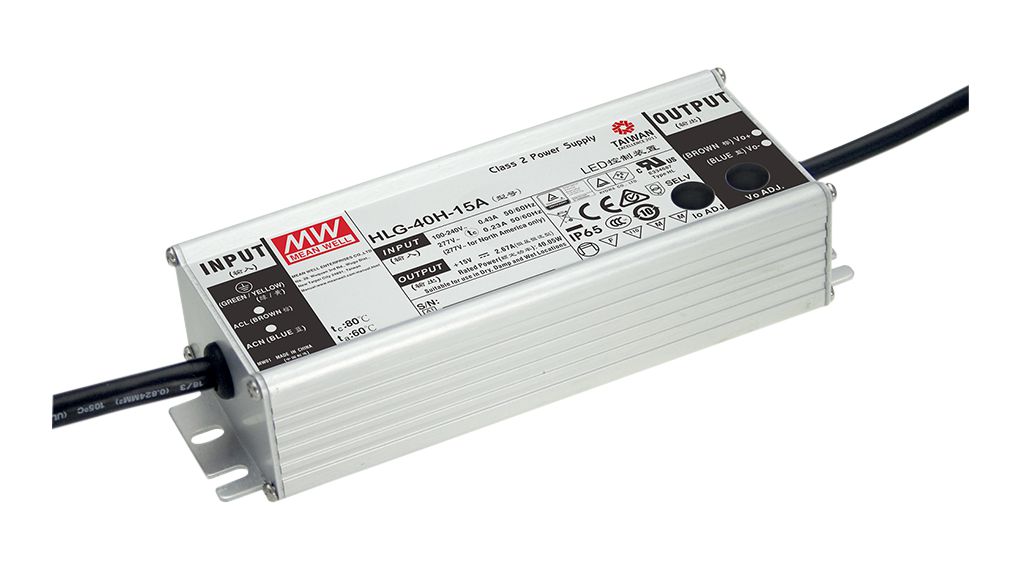 This is Dimmable LED Driver 30V Output 40W Output 1.3A Output Constant Current / Constant Voltage Dimmable manufactured by MEAN WELL. The manufacturer part number is HLG-40H-30B. Additionally, the product is supplied with 1 outputs. It is IP rated with ip65, ip67. The product hlg-40h, is a highly preferred choice for users. Additionally, its diming operation is adjustable . The product offers a maximum 40w output power . Its input voltage is 431 v dc. Features a 30 v output voltage. led driver is a versatile product designed to provide user-defined applications. The terminal is a wire type.