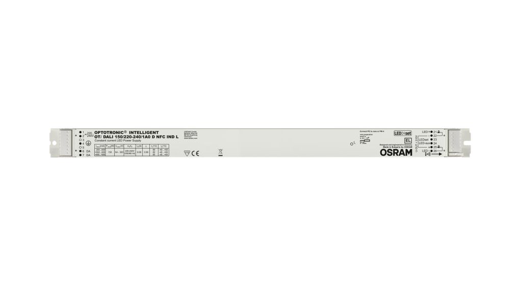 This is LED Driver 64-300V Output 150W Output 125mA Output Constant Current Dimmable manufactured by Osram. The manufacturer part number is OTi-DALI-150/220-240/1A0-D-NFC-IND-L. Additionally, it has a/an led driver type LED driver . It carries 125ma output current. The product offers a maximum 150w output power . It is dimmable yes . Features a 64-300v output voltage. It allows to operate using constant current. Its input voltage is 198-276 v.