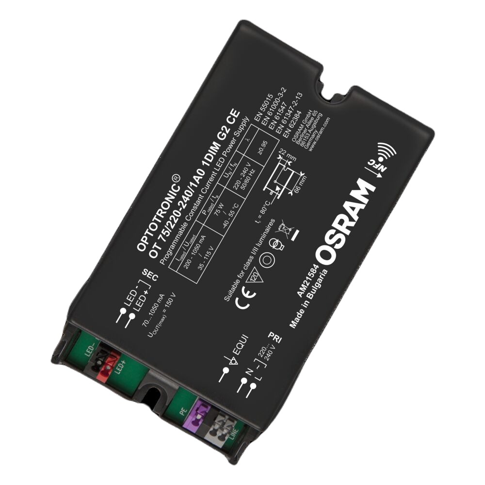 This is Dimmable LED Driver 35 → 115V Output 75W Output 1.05A Output Constant Current Dimmable manufactured by Osram. The manufacturer part number is OT-75/220-240/1A0-1DIM-G2-CE. Additionally, it has a/an dimmable led driver type LED driver . It carries 1.05a output current. The product offers a maximum 75w output power . It is dimmable yes . Features a 35 → 115v output voltage. It allows to operate using constant current. Its input voltage is 198 → 264 v.