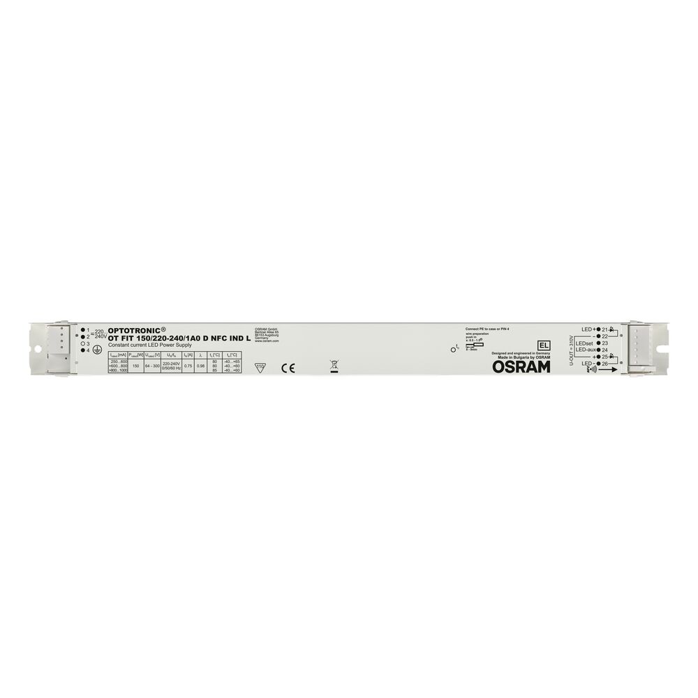 This is LED Driver 64 → 300V Output 150W Output 1A Output Constant Current manufactured by Osram. The manufacturer part number is OT-FIT-150/220-240/1A0-D-NFC-IND-L. Additionally, it has a/an led driver type LED driver . It carries 1a output current. The product offers a maximum 150w output power . It is dimmable no . Features a 64 → 300v output voltage. It allows to operate using constant current. Its input voltage is 198 → 264 v.