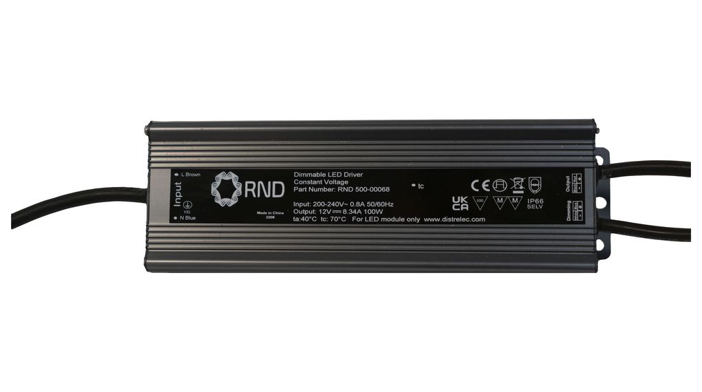This is LED Driver 24V Output 100W Output 4.17A Output Constant Voltage manufactured by RND. The manufacturer part number is RND 500-00069. Additionally, it has a/an led driver type LED driver . It carries 4.17a output current. The product offers a maximum 100w output power . It is dimmable no . Features a 24v output voltage. It allows to operate using constant voltage. Its input voltage is 200 → 240 v.
