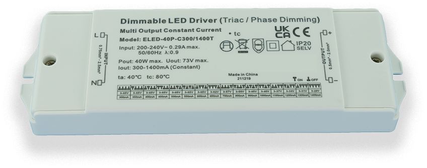 This is Dimmable LED Driver 3 → 65V Output 40W Output 1400mA Output Constant Current Dimmable manufactured by RS PRO. The manufacturer part number is 360-651. Additionally, the product is supplied with 8 outputs. Additionally, it has a/an dimmable led driver type LED driver . Additionally, its diming operation is triac . The product has a current rating of 1400ma. The product complies with all safety standards, such as en55015, en61000-3-2, en61000-4-2,3,4,5,6,11, en61347-1, en61347-2-13, en61547, fcc part 15b, ul8750. It carries 1400ma output current. It is IP rated with ip20. Moreover, the product has a nominal 200 → 240v ac voltage rating. The product offers a maximum 40w output power . It has ac input voltage. Its primary type is ac . It is dimmable yes . Features a 3 → 65v output voltage. It allows to operate using constant current. Its input voltage is 200 → 240v ac.