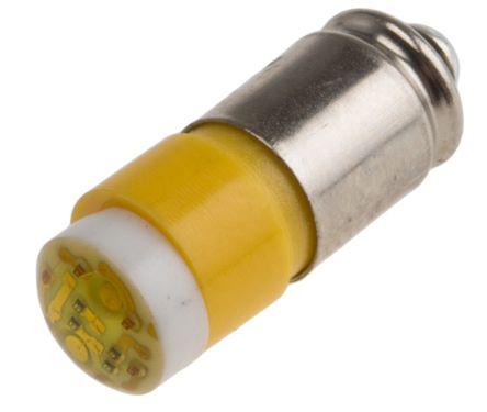 This is LED Reflector Bulb Midget Groove Yellow Multichip 5 mm Lamp 6mm dia. 12 V ac/dc manufactured by RS Pro. The manufacturer part number is 206-081. Its diameter is 6mm. The product has a current rating of 30 ma. In addition, it has a standard multichip type chip . Its lamp is 5 mm in size . Moreover, the product has a nominal 12 v ac/dc voltage rating. The given intensity of the product is 45 mcd. The lamp base is midget groove. Regarding light output colour, it outputs yellow light colour. Its accurate length is 15.25 mm. Furthermore, 180° is the viewing angle of the product. Whereas, its peak wavelength is 585 nm . Adding to this, it has a long life span for about 100000h.