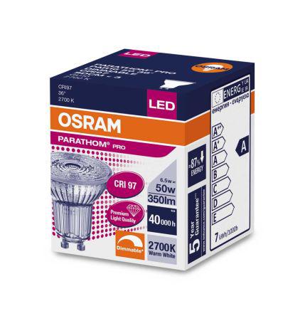 This is LPPAR16 D 50 36 6.5W/927 230V GU10 manufactured by Osram. The manufacturer part number is 4058075095427. Its diameter is 51mm. This integrates a colour temperature of 2700k. Moreover, the product has a nominal 220 → 240 v voltage rating. The product par16, is a highly preferred choice for users. This product carries 6.5 w. Adding to this, it has a long life span for about 40000h. The lamp base is gu10. Its accurate length is 55 mm. It is dimmable yes . Features luminosity up to 350 lm. It is rated with a EU energy efficiency. The product features a beam angle of 40°. The tone of the colour includes warm white.