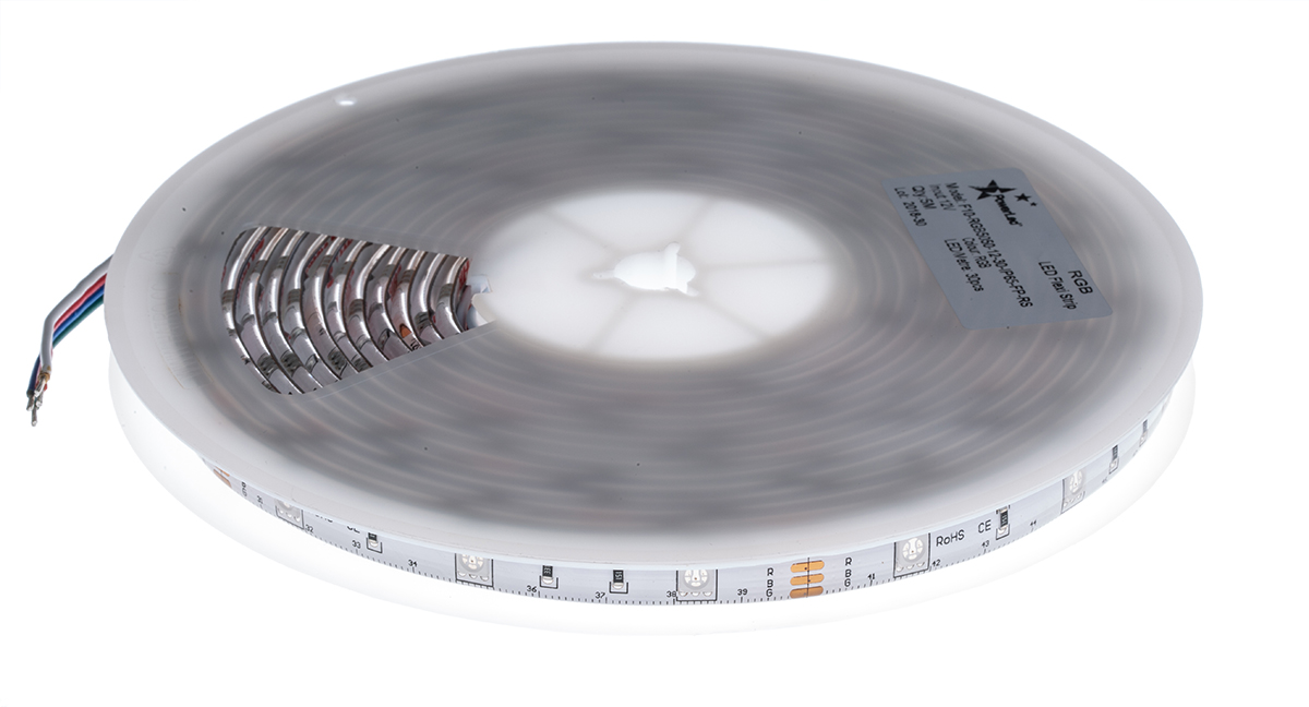 This is 5m RGB LED Strip manufactured by PowerLED. The manufacturer part number is F10-RGB5050-12-30-IP65. It is IP rated with ip65. Moreover, the product has a nominal 12v dc voltage rating. Moreover, the product is flexible . Its strip width is about 10mm . Moreover, it has 30 number of LEDs per metre . The LED has a classic blue, green, red colours. Its strip is about 5m in length .