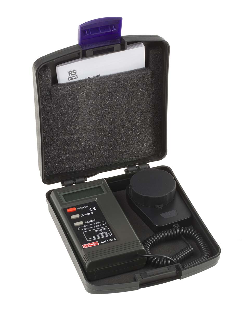 This is ILM1332A Light Meter 200000lx manufactured by RS Pro. The manufacturer part number is 123-2220. In addition, it is offered with ±3 % best accuracy . The splendid features of the product include accurate, data hold, instant response. The typical product's weight is 250g. It has a minimum light level of 0.01lx . Whereas, the maximum light level of the product is 200000lx . While it has ilm1332a of model number. In addition, the height is 135mm. Moreover, the product gets power from battery. Furthermore, the product is 33mm wide. Its accurate length is 72mm. Its battery life is about 200 h . Whereas, the minimum operating temperature of the product is 0°c. This 9v battery is comparatively much efficient than common batteries. It has a maximum operating temperature of +40°c. Features 0.1 lx resolution. These sensors are sort of photodiode.