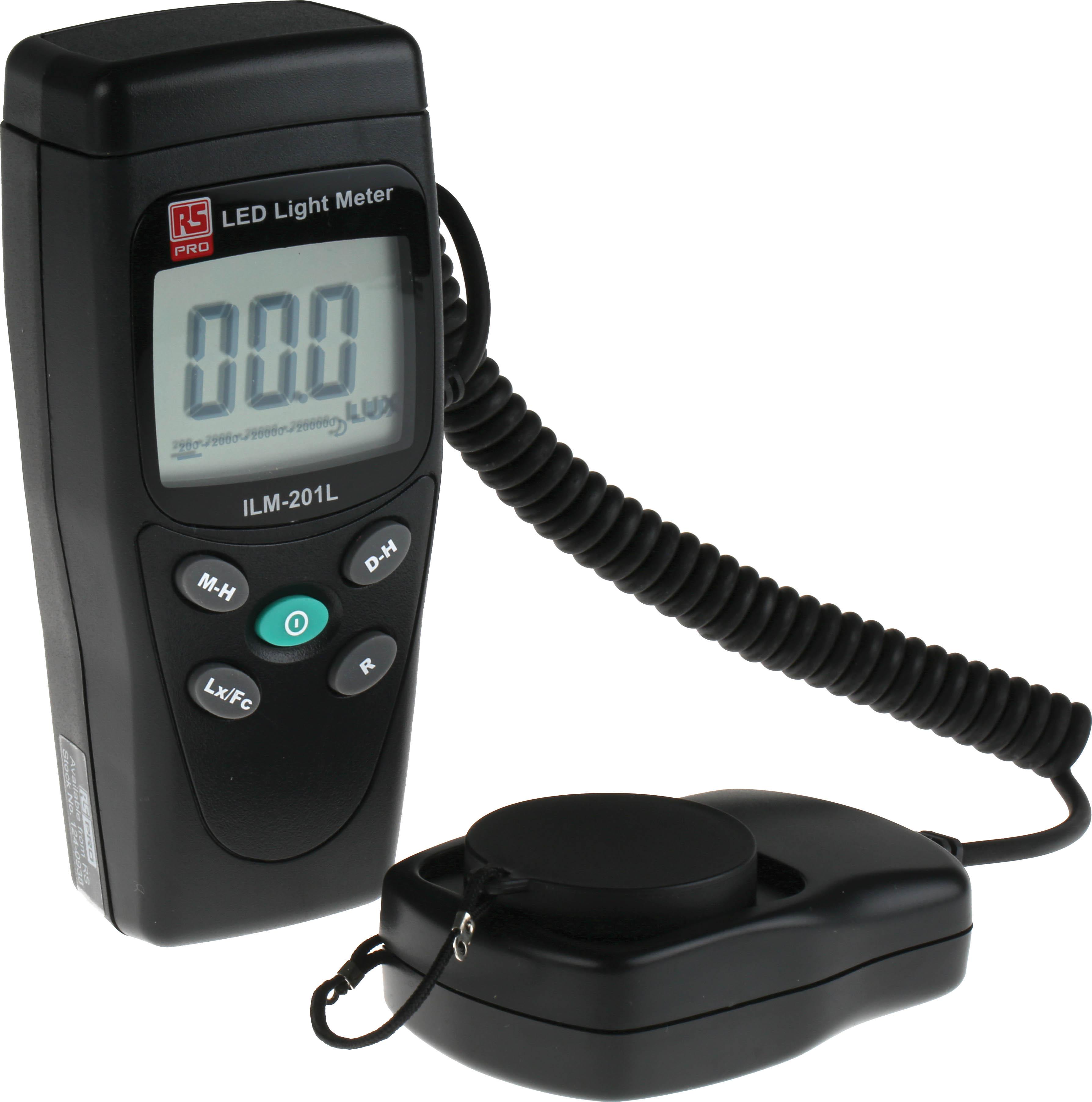 This is ILM201L Light Meter manufactured by RS Pro. The manufacturer part number is 124-0938. In addition, it is offered with ±3 (incandescent) % best accuracy . The splendid features of the product include manual ranging, manual zero adjustment, max hold. The typical product's weight is 250g. While it has ilm201l of model number. In addition, the height is 130mm. Moreover, the product gets power from battery. Furthermore, the product is 38mm wide. Its accurate length is 55mm. These sensors are sort of photodiode.