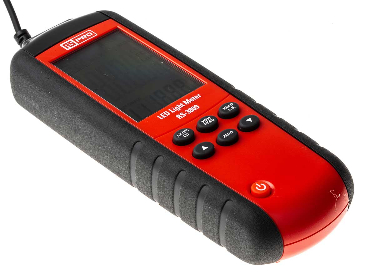 This is Light Meter 400000lx manufactured by RS Pro. The manufacturer part number is 146-9083. In addition, it is offered with ±3 % best accuracy . These sensors are sort of silicon photo diode. The typical product's weight is 250g. It has a minimum light level of 40lx . Whereas, the maximum light level of the product is 400000lx . While it has rs-3809 of model number. In addition, the height is 28mm. Moreover, the product gets power from battery. Furthermore, the product is 63mm wide. Its accurate length is 162mm. This 9v battery is comparatively much efficient than common batteries.