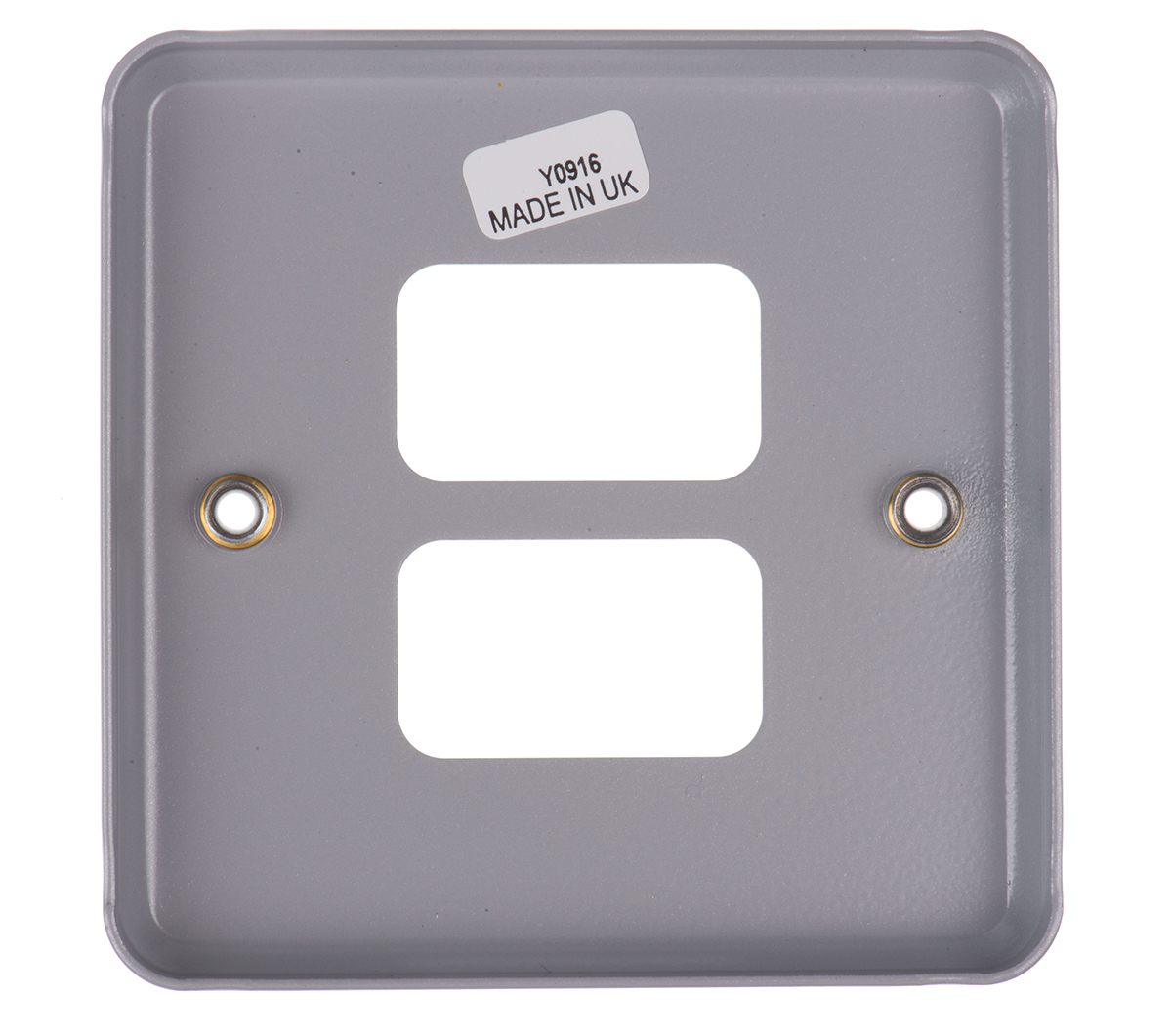 This is White 2 Gang Face Plate Aluminium Faceplate manufactured by MK Electric. The manufacturer part number is K3492 ALM. Furthermore, the product is 86mm wide. It has a decent grey colour. The product is made from highly stable and reliable aluminium. It comprises 2 gangs. In addition, the height is 86mm.