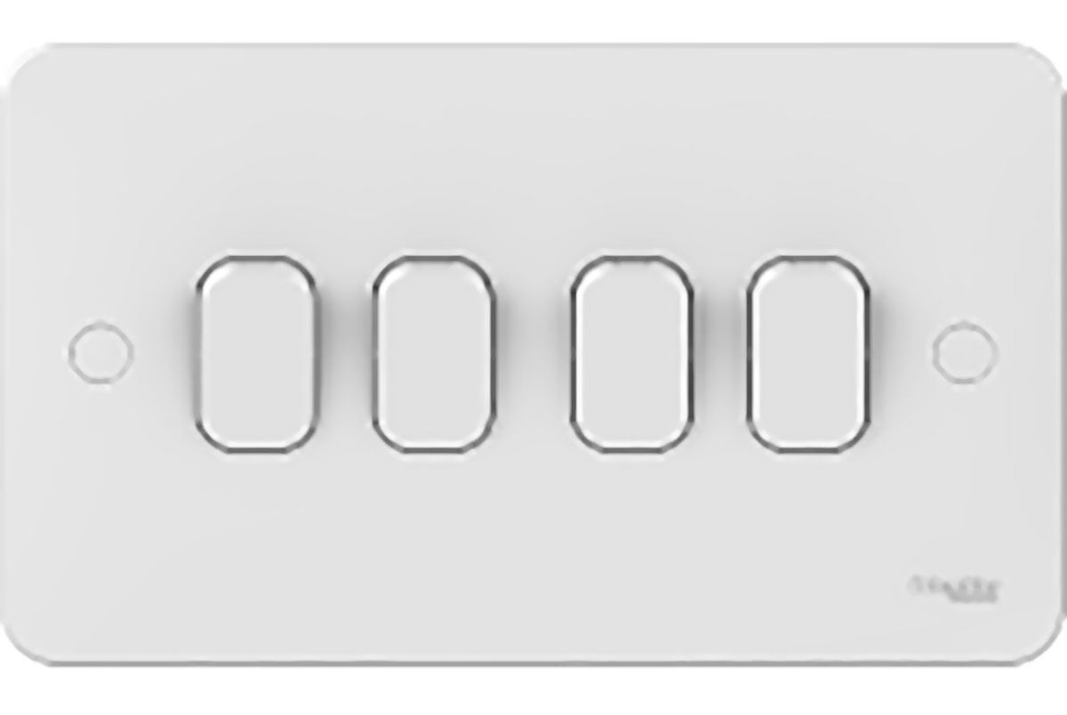 This is White Panel Mount Rocker Light Switch White 7 mm 2 Way Screwed 4 Gang BS Standard 87mm Not Illuminated manufactured by Schneider Electric. The manufacturer part number is GGBL1042S. In addition, it has a/an rocker light switch type light switch . Better World Verification Options - green premium. A quality product with a nice matt finish. The product has a current rating of 10a. It comprises 4 gangs. It is IP rated with ip20. The product lisse, is a highly preferred choice for users. It has a decent white colour. The product is made from highly stable and reliable urea formaldehyde. Its accurate length is 148.5mm. In addition, the height is 87mm. Moreover, the product has a nominal 230v voltage rating. Furthermore, the product is 87mm wide. The product comes in 149mm depth. It has a/an white colour shade . Is it a better world product? yes. Its faceplate depth is approximately 7mm . It comprises 2 ways. It has a bs standard standard fixing . It has a panel type mount .