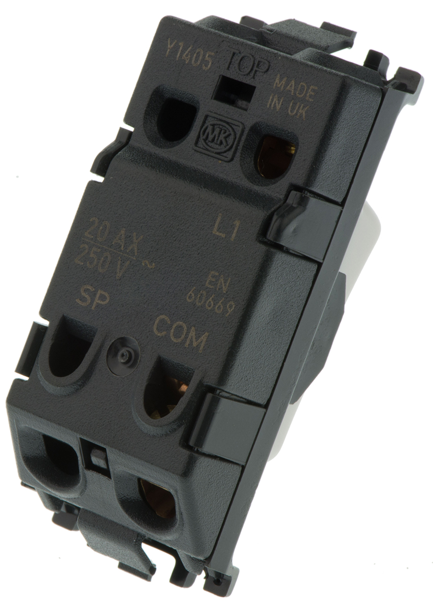 This is Black 20 A DIN Rail Mount Rocker Light Switch Black 1 Way Clip In Semi Gloss 1 Gang MK Grid Not Illuminated IP2X manufactured by MK Electric. The manufacturer part number is 56891 BLK. The product has a current rating of 20a. The product grid plus, is a highly preferred choice for users. It has a decent black colour. It comprises 1 ways. It has equipped with 1 poles.