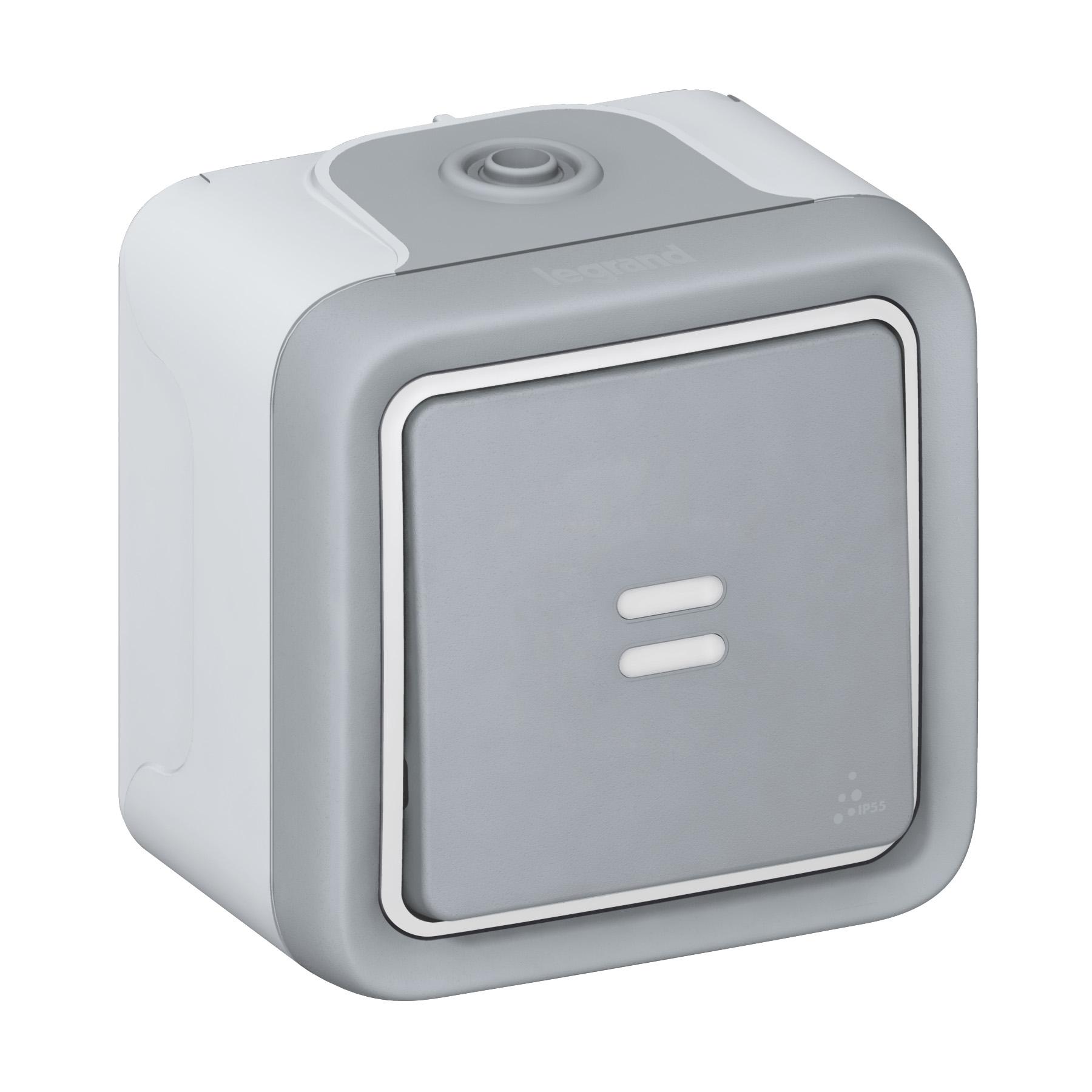This is Grey Push Button Light Switch 1 Way manufactured by Legrand. The manufacturer part number is 069907. In addition, it has a/an push button light switch type light switch . The product has a current rating of 10a. It is IP rated with ip55. It has a decent grey colour. Moreover, the product has a nominal 250v voltage rating. It features plexo range. It comprises 1 ways. Quality product with a square push button operator switch type. It has equipped with 1 poles. It has a wall type mount .