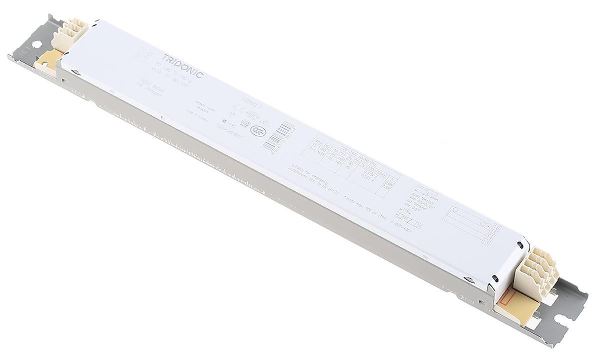 This is 80 W Electronic Fluorescent Lighting Ballast 220 → 240 V manufactured by Tridonic. The manufacturer part number is 22185209. It is rated with a2 EU energy efficiency. Moreover, the product has a nominal 220 → 240 v voltage rating. This product carries 80 w. Additionally, it has a t5 lamp supported shape . In addition, the height is 21mm. Furthermore, the product is 30 mm wide. Its accurate length is 280 mm. It is dimmable no . Whereas, the minimum operating temperature of the product is -25°c. It has a/an fluorescent type supported lamp . It has a high frequency feature yes . It contains a/an electronic type ballast . It has a maximum operating temperature of +60°c.