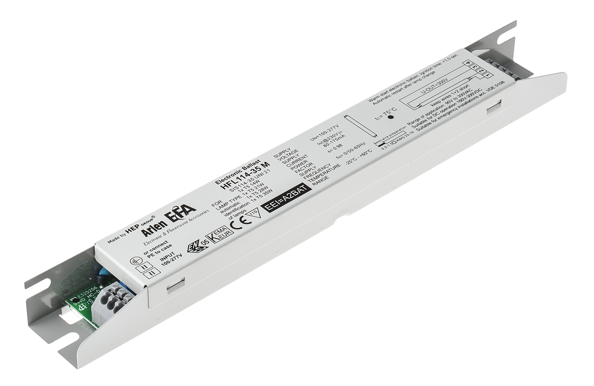 This is 14 → 35 (T5) W Electronic Fluorescent Lighting Ballast 220 → 240 V manufactured by RS Pro. The manufacturer part number is 778-5313. It is rated with a2 EU energy efficiency. Moreover, the product has a nominal 220 → 240 v voltage rating. This product carries 14 → 35 (t5) w. Additionally, it has a t5 lamp supported shape . In addition, the height is 21mm. Furthermore, the product is 30 mm wide. Its accurate length is 235 mm. It is dimmable no . Whereas, the minimum operating temperature of the product is -25°c. It has a/an fluorescent type supported lamp . It has a high frequency feature yes . It contains a/an electronic type ballast . It has a maximum operating temperature of +60°c.