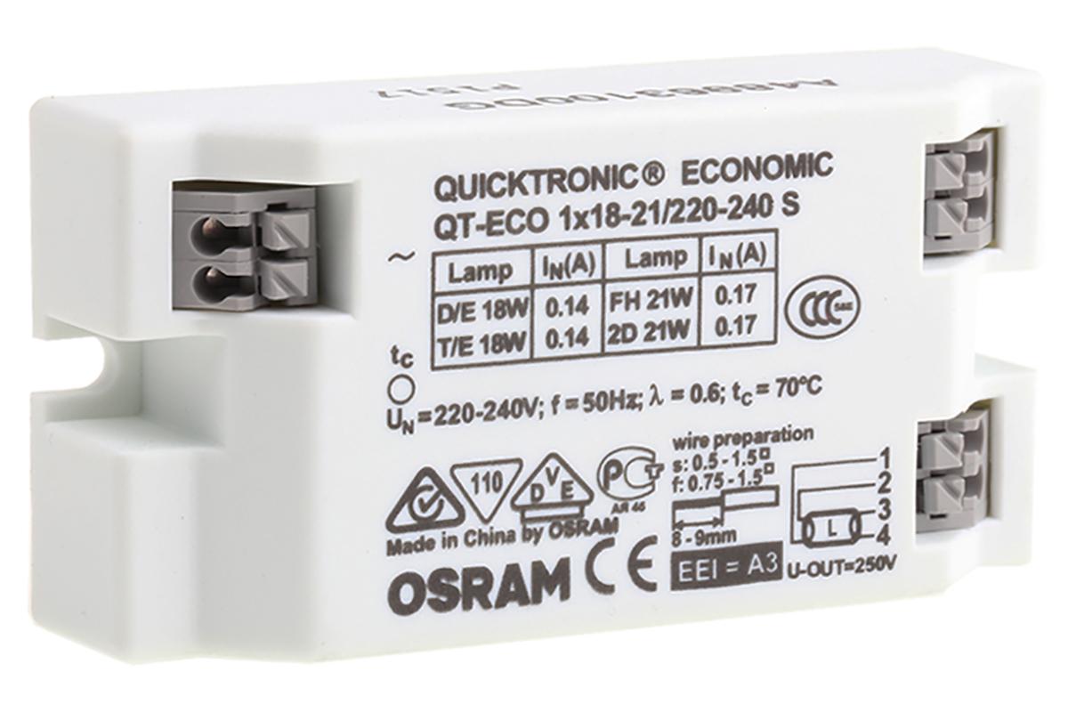This is 18 W 21 W 16.5 (HF) W 17 (HF) W 19 (HF) W Electronic Compact Fluorescent Lighting Ballast 220 → 240 V manufactured by Osram. The manufacturer part number is 4050300794907. It is rated with a3 EU energy efficiency. Moreover, the product has a nominal 220 → 240 v voltage rating. This product carries 18 w, 21 w, 16.5 (hf) w, 17 (hf) w, 19 (hf) w. Additionally, it has a dd lamp supported shape . In addition, the height is 22mm. Furthermore, the product is 40 mm wide. Its accurate length is 80 mm. It is dimmable no . Whereas, the minimum operating temperature of the product is -15°c. It has a/an compact fluorescent type supported lamp . It has a high frequency feature yes . It contains a/an electronic type ballast . It has a maximum operating temperature of +50°c.
