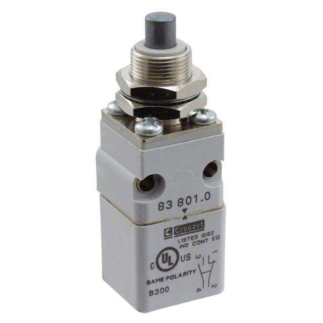 This is manufactured by Crouzet. The manufacturer part number is 83801051. It has a 1020gf of operating force. It is assigned with possible HTSUS value of 8536.50.9055. The product is rohs compliant. Moreover, it has plug in terminal style. The product has -20°c ~ 70°c operating temperature range. Whereas, it also has a 0.016" (0.4mm) of differential travel. The product exhibits 250 v of AC voltage rating. In addition, it is reach unaffected. The crouzet's product offers user-desired applications. It is designed as a on-mom switching function. Its typical moisture sensitivity level is 1 (unlimited). It has an integral spdt (db/dm) circuit. Additionally, the product's output is 5a (ac). It is IP rated with ip55 - dust protected, water resistant. The product is available in panel mount configuration. The product 83800, is a highly preferred choice for users. In addition, bulk is the available packaging type of the product. The product carries round (pin plunger) actuator. The product is designated with the ear99 code number.