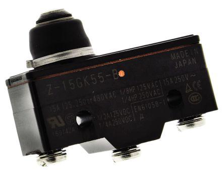 This is IP00 Snap Action Limit Switch Plunger NO/NC 500V manufactured by Omron. The manufacturer part number is Z15GK55B. It has 250v maximum DC voltage. A bespoke product carries 500v of maximum AC voltage. The given dimensions of the product include 37.4 x 49.2 x 17.45 mm. It also carries 15 a maximum current. It is IP rated with ip00. Whereas, the minimum operating temperature of the product is -25°c. The normal state configuration includes no/nc. Its accurate length is 37.4mm. It has spdt pole and throw configuration. Furthermore, the product is 49.2mm wide. The product comes in 17.45mm depth. The product carries plunger actuator. It has typical contact type of snap action. Moreover, it has a minimum 10000000 cycles mechanical life . It has a maximum operating temperature of +80°c. The terminal is a screw type.