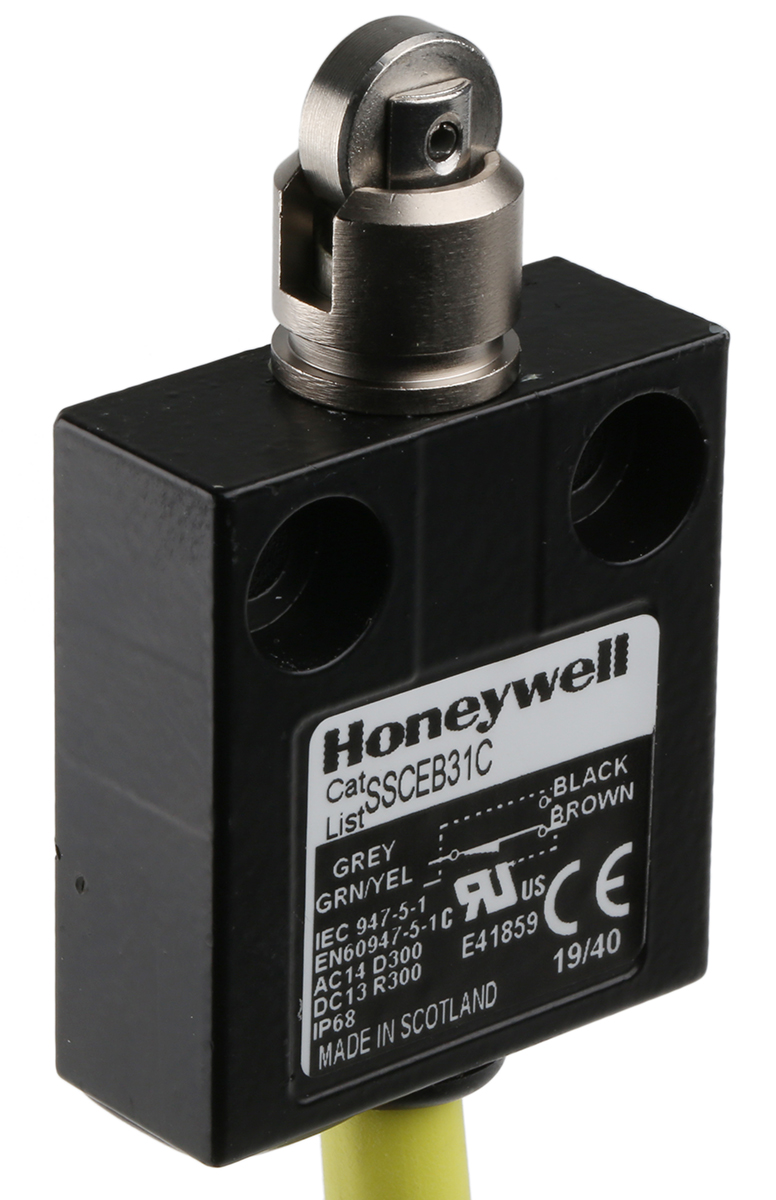 This is IP68 Snap Action Limit Switch Plunger Die Cast Zinc NO/NC 240V manufactured by Honeywell. The manufacturer part number is SSCEB31C. A bespoke product carries 240v of maximum AC voltage. It has a 22.5 n of operating force. The product carries plunger actuator. It also carries 4a maximum current. It is IP rated with ip68. The product ssce, is a highly preferred choice for users. Additionally, it performs a snap action type action . Its accurate length is 67mm. It has spdt pole and throw configuration. The product also features robust die cast zinc housing material. Furthermore, the product is 40mm wide. The product comes in 16mm depth. The normal state configuration includes no/nc. The product also provide mechanical stability with 10000000cycles. It allows cable connection type. It has a maximum operating temperature of +90°c. Whereas, the minimum operating temperature of the product is -40°c. The product complies with all safety standards, such as ce certified, en 60947-5-1, iec 60947-5-1.