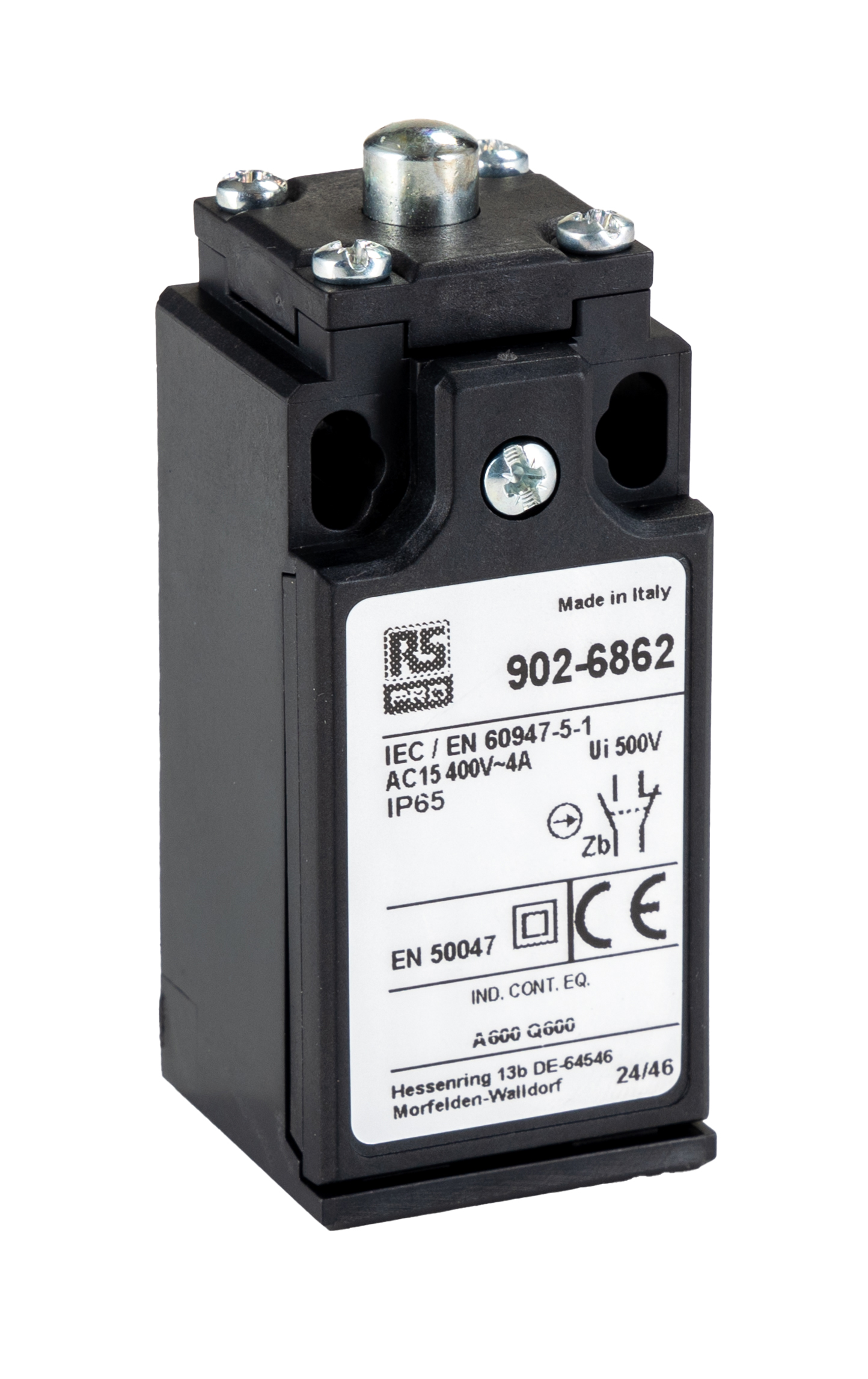 This is IP65 Snap Limit Switch Plunger Thermoplastic Fibreglass NO/NC 400V manufactured by RS Pro. The manufacturer part number is 902-6862. It has 250v maximum DC voltage. A bespoke product carries 400v of maximum AC voltage. It has a 15 n of operating force. The product carries plunger actuator. It also carries 10a maximum current. Additionally, it performs a snap action type action . It is IP rated with ip65. Its accurate length is 30.3mm. It has dpst pole and throw configuration. The product also features robust glass fibre reinforced thermoplastic housing material. Furthermore, the product is 73mm wide. The product comes in 30mm depth. Whereas, its mounting orientation is vertical . The normal state configuration includes no/nc. The product also provide mechanical stability with 15000000operations. It has a maximum operating temperature of +70°c. Whereas, the minimum operating temperature of the product is -25°c. It allows cable connection type.