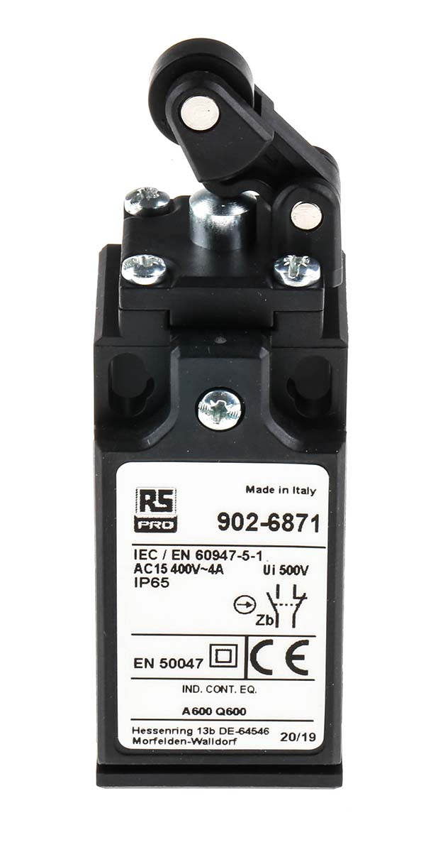This is IP65 Snap Limit Switch Roller Lever Thermoplastic Fibreglass NO/NC 400V manufactured by RS Pro. The manufacturer part number is 902-6871. It has 250v maximum DC voltage. A bespoke product carries 400v of maximum AC voltage. It has a 7 n of operating force. The product carries roller lever actuator. It also carries 10a maximum current. It is IP rated with ip65. Additionally, it performs a snap action type action . Its accurate length is 30.3mm. It has dpst pole and throw configuration. The product also features robust glass fibre reinforced thermoplastic housing material. Furthermore, the product is 92mm wide. The product comes in 30mm depth. Whereas, its mounting orientation is vertical . The normal state configuration includes no/nc. The product also provide mechanical stability with 15000000operations. It has a maximum operating temperature of +70°c. Whereas, the minimum operating temperature of the product is -25°c. It allows cable connection type.