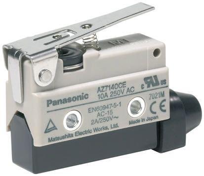 This is IP64 Limit Switch Lever NO/NC 250V manufactured by Panasonic. The manufacturer part number is AZ7140CEJ. It has 115v maximum DC voltage. A bespoke product carries 250v of maximum AC voltage. The given dimensions of the product include 50.5 x 70.5 x 21.4 mm. It also carries 10 a maximum current. It is IP rated with ip64. Whereas, the minimum operating temperature of the product is -20°c. The product az7, is a highly preferred choice for users. The normal state configuration includes no/nc. Its accurate length is 50.5mm. The terminal is a screw type. Furthermore, the product is 70.5mm wide. The product comes in 21.4mm depth. The product carries lever actuator. Moreover, it has a minimum 10⁷ cycles mechanical life . It has spdt pole and throw configuration. It has a maximum operating temperature of +60°c.