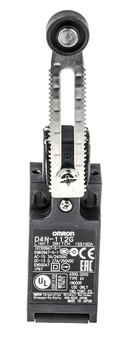 This is D4N Safety Switch with Roller Lever Actuator NO/NC manufactured by Omron. The manufacturer part number is D4N-112G. The product complies with all safety standards, such as ce. It is IP rated with ip67. The product d4n, is a highly preferred choice for users. Additionally, it performs a snap action type action . Its accurate length is 73mm. It has spdt pole and throw configuration. Furthermore, the product is 31mm wide. The product comes in 45mm depth. The product carries roller lever actuator. The normal state configuration includes no/nc. The product also provide mechanical stability with 15000000cycles. It has a maximum operating temperature of +70°c. Whereas, the minimum operating temperature of the product is -30°c. It allows pg13.5 connection type.