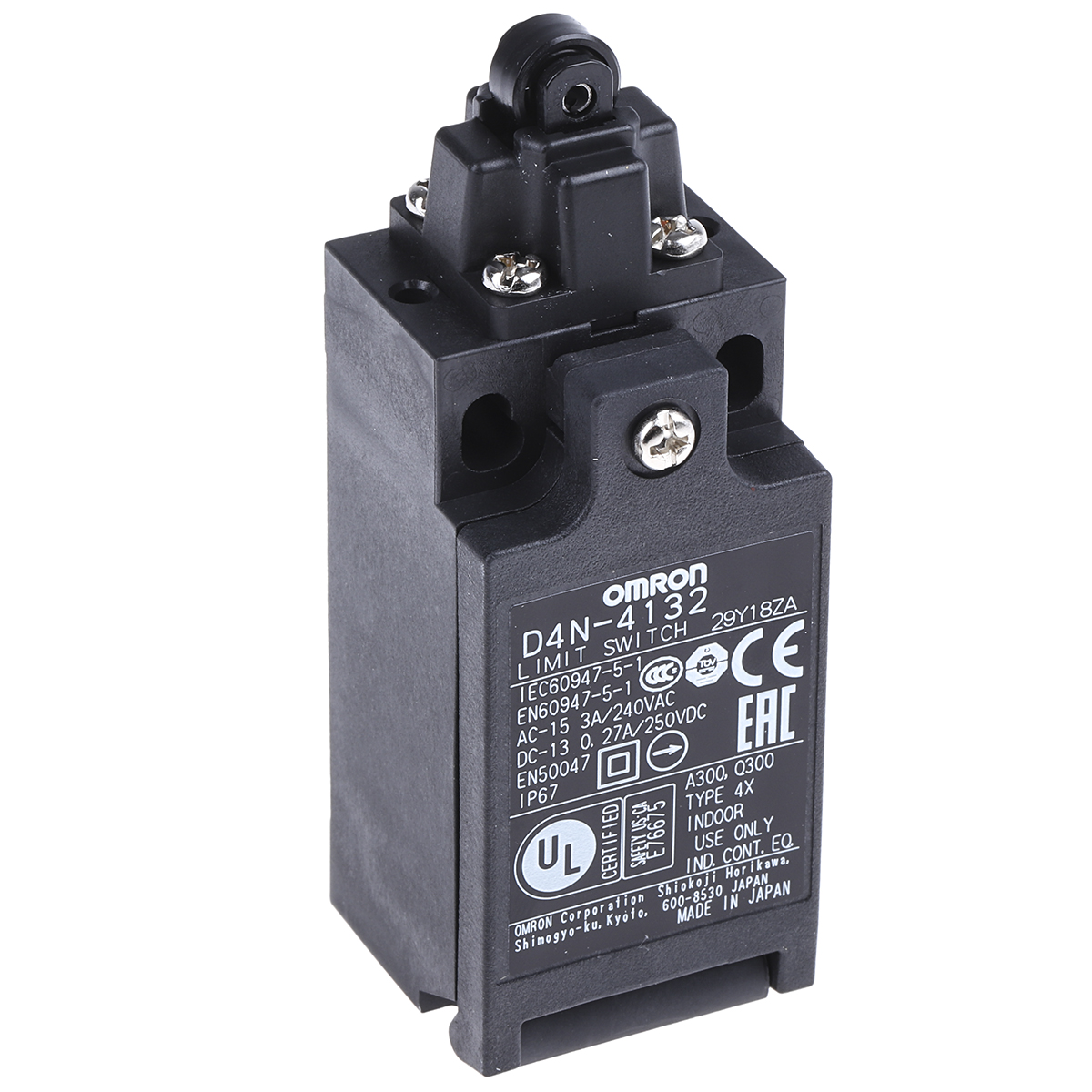 This is D4N Safety Switch with Roller Plunger Actuator NO/NC manufactured by Omron. The manufacturer part number is D4N-4132. The product complies with all safety standards, such as ce. The product d4n, is a highly preferred choice for users. Its accurate length is 64mm. It has dpst pole and throw configuration. Furthermore, the product is 31mm wide. The product comes in 31.5mm depth. The product carries roller plunger actuator. The normal state configuration includes no/nc. The product also provide mechanical stability with 15000000cycles. It allows m20 connection type.