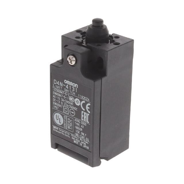 This is manufactured by Omron Automation and Safety. The manufacturer part number is D4N-4131. It has a 663gf of operating force. It is assigned with possible HTSUS value of 8536.50.7000. The product is rohs3 compliant. The product offers long-lasting services of 300,000 cycles. Moreover, it has screw terminal terminal style. 250 v of DC voltage rating. The product has -30°c ~ 70°c operating temperature range. The product also provide mechanical stability with 15,000,000 cycles. Whereas, it also has a 0.040" (1.0mm) of differential travel. The product exhibits 240 v of AC voltage rating. In addition, it is reach unaffected. The given overtravel figures include 0.158" (4.0mm). The omron automation and safety's product offers user-desired applications. While the pretravel value is 0.080" (2.0mm). It is designed as a on-mom, off-mom switching function. It has the given operating position of 0.715" (18.2mm). Its typical moisture sensitivity level is 1 (unlimited). It has an integral dpst-no/nc circuit. It has a long 9 weeks standard lead time. Additionally, the product's output is 3a (ac), 270ma (dc). It is IP rated with ip67 - dust tight, waterproof. The product is available in chassis mount configuration. The product d4n, is a highly preferred choice for users. In addition, bulk is the available packaging type of the product. The product carries round (pin plunger) actuator. It carries a release force of 153gf. The product is designated with the ear99 code number.
