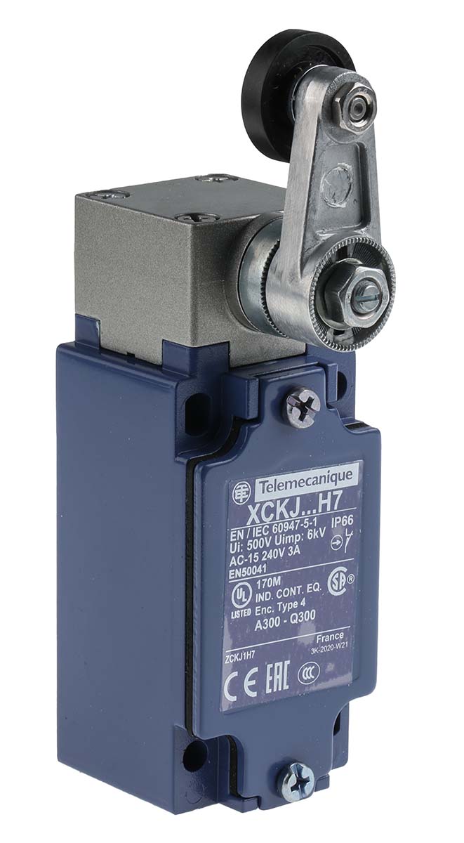 This is IP66 Snap Action Roller Lever Roller Lever Zamak® Zinc Alloy NO/NC 500V manufactured by Telemecanique Sensors. The manufacturer part number is XCKJ10511H7. A bespoke product carries 500v of maximum AC voltage. Whereas, its mounting orientation is side . The normal state configuration includes no/nc. It also carries 10a maximum current. It is IP rated with ip66. The product osisense xc, is a highly preferred choice for users. Additionally, it performs a snap action type action . Its accurate length is 77mm. It has dpst pole and throw configuration. The product also features robust zamak zinc alloy housing material. Furthermore, the product is 40mm wide. The product comes in 44mm depth. The product carries roller lever actuator. The product also provide mechanical stability with 30000000cycles. It has a maximum operating temperature of +70°c. Whereas, the minimum operating temperature of the product is -25°c. It allows 1/2 in npt connection type.