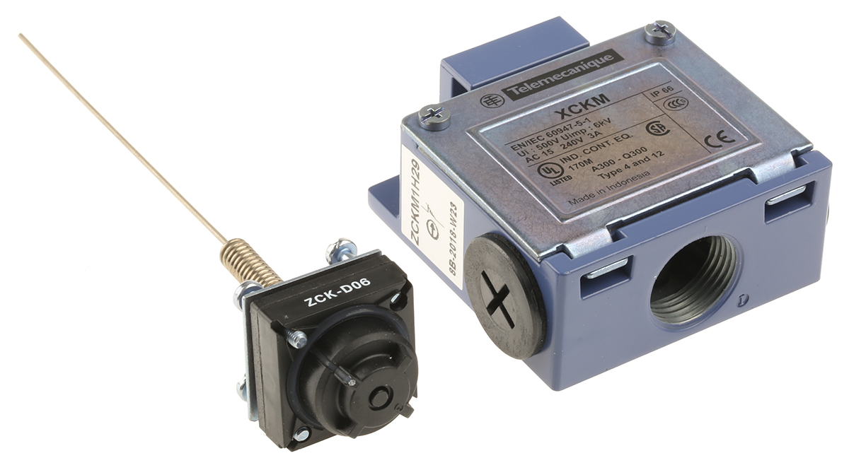 This is IP66 Snap Action Limit Switch Coil Spring Zinc Alloy NO/NC 240V manufactured by Telemecanique Sensors. The manufacturer part number is XCKM106H29. It has 250v maximum DC voltage. A bespoke product carries 240v of maximum AC voltage. The product carries cats whisker actuator. It also carries 10a maximum current. It is IP rated with ip66. The product xckm, is a highly preferred choice for users. Additionally, it performs a snap action type action . Its accurate length is 64mm. It has dp pole and throw configuration. The product also features robust zinc alloy housing material. Furthermore, the product is 63mm wide. The product comes in 30mm depth. The normal state configuration includes no/nc. The product also provide mechanical stability with 10000000cycles. It has a maximum operating temperature of +70°c. Whereas, the minimum operating temperature of the product is -25°c. It allows m20 connection type.