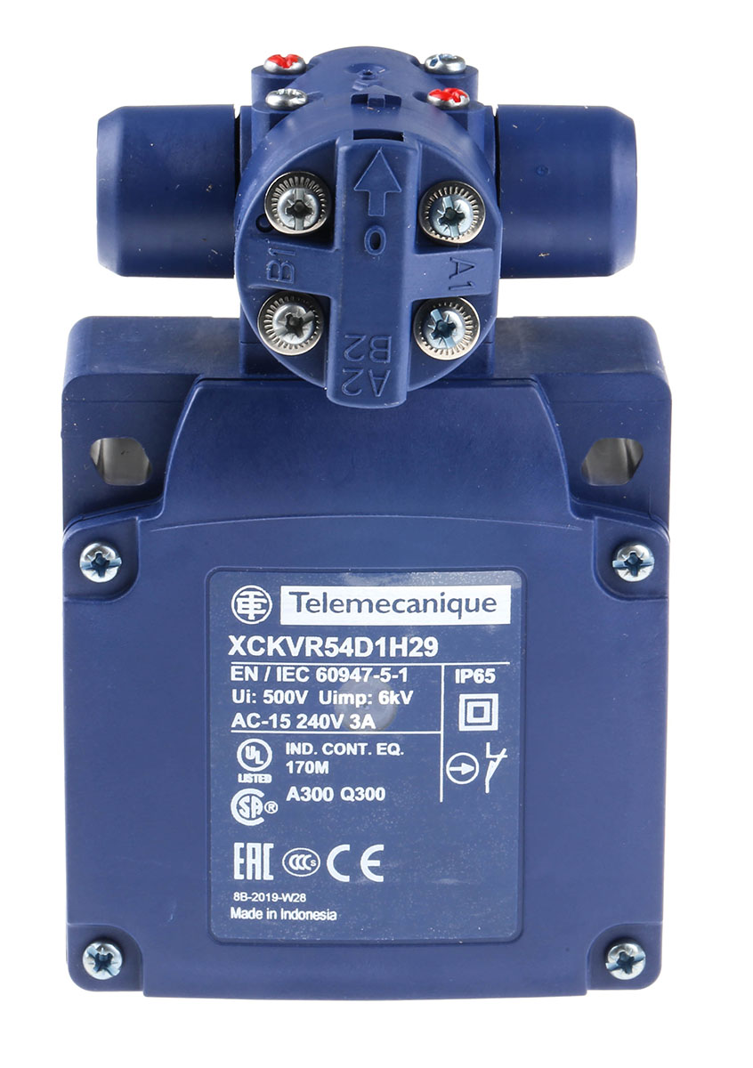 This is IP65 Slow Break Limit Switch Crossed Rods Lever PBT+PC GF30 FR Plastic 2NC 240V manufactured by Telemecanique Sensors. The manufacturer part number is XCKVR54D1H29. It has 125v maximum DC voltage. A bespoke product carries 240v of maximum AC voltage. It has a 0.5 nm of operating force. The product carries rod actuator. It also carries 10a maximum current. It is IP rated with ip65. The product xckvr, is a highly preferred choice for users. Additionally, it performs a slow action type action . Its accurate length is 200mm. It has 4p pole and throw configuration. The product also features robust plastic housing material. Furthermore, the product is 57mm wide. The product comes in 200mm depth. Whereas, its mounting orientation is en50047 . The normal state configuration includes 2nc. The product also provide mechanical stability with 1000000cycles. It has a maximum operating temperature of +70°c. Whereas, the minimum operating temperature of the product is -25°c. It allows m20 connection type.