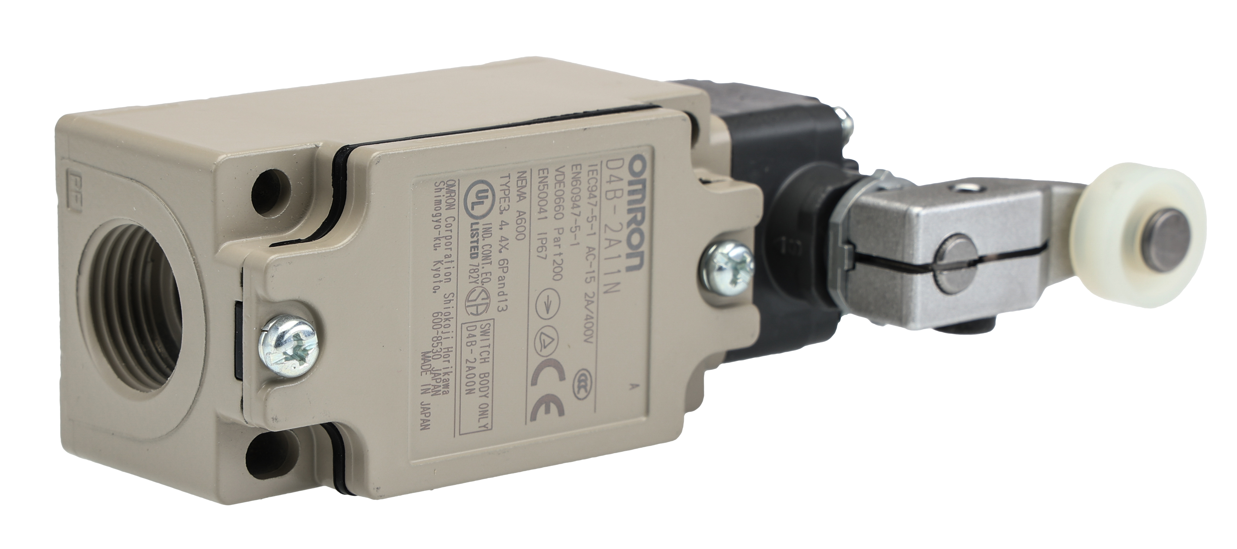 This is IP67 Slow Action Limit Switch Roller Lever Metal 2NC 600V manufactured by Omron. The manufacturer part number is D4B-2A11N. It has 250v maximum DC voltage. A bespoke product carries 600v of maximum AC voltage. Whereas, its mounting orientation is vertical . The normal state configuration includes 2nc. It also carries 10a maximum current. It is IP rated with ip67. The product d4b-n, is a highly preferred choice for users. Additionally, it performs a slow action type action . Its accurate length is 40mm. The product also features robust metal housing material. Furthermore, the product is 43mm wide. The product comes in 131.3mm depth. The product carries roller lever actuator. It has a maximum operating temperature of +80°c. Whereas, the minimum operating temperature of the product is -40°c. It allows g1/2 connection type.