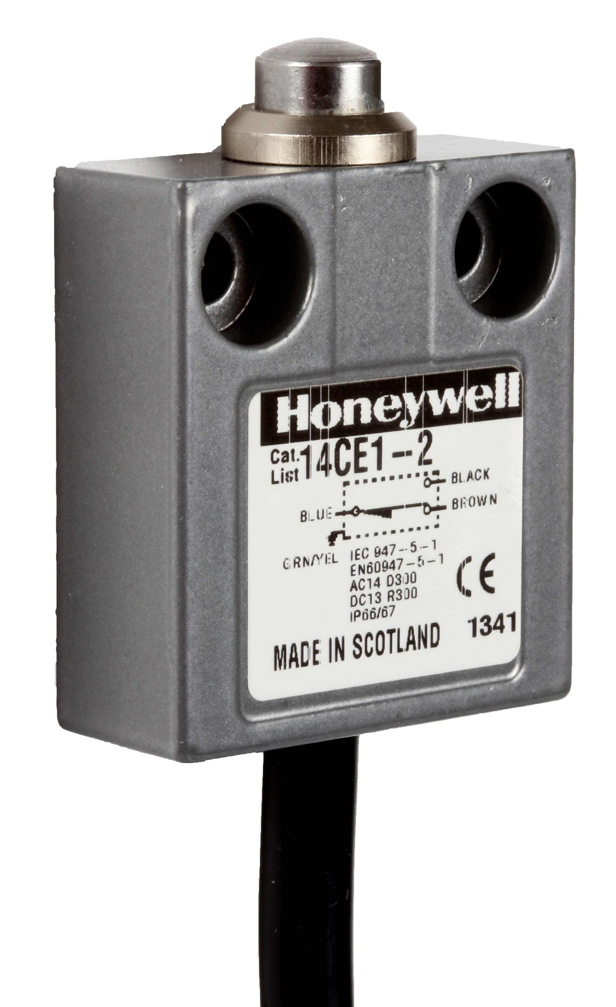 This is Snap Action Limit Switch - Zinc Die-Cast 1NC 1NO Top Plunger 240V ac IP65 IP66 IP67 IP68 manufactured by Honeywell. The manufacturer part number is 14CE1-2. A bespoke product carries 240v ac of maximum AC voltage. The normal state configuration includes 1nc/1no. It also carries 5a maximum current. It is IP rated with ip65, ip66, ip67, ip68. It has spdt pole and throw configuration. The product also features robust die cast zinc housing material. Additionally, it performs a snap action type action . The product carries plunger actuator.