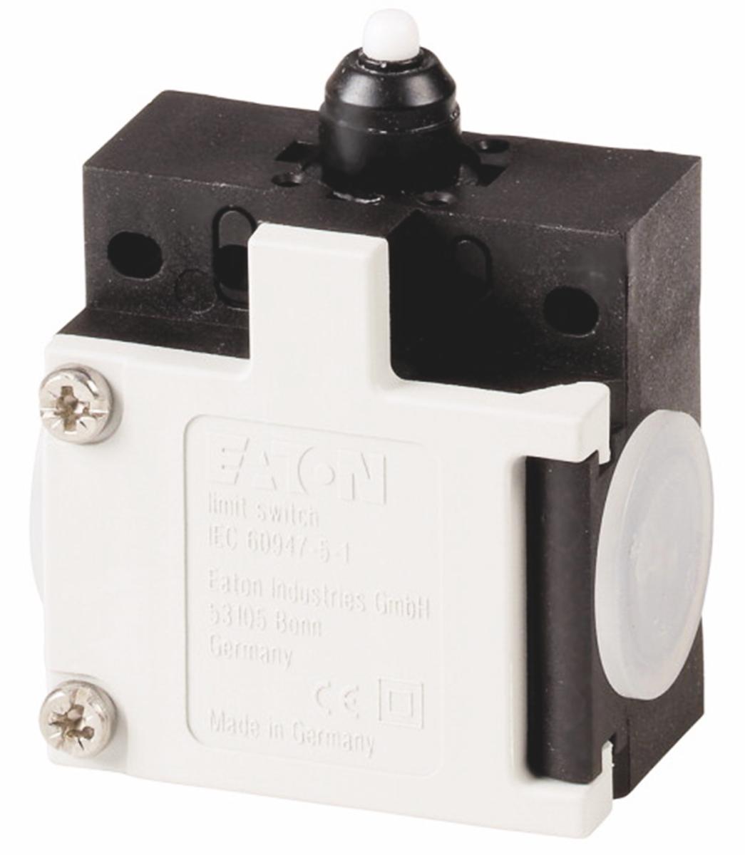This is Slow Action Plunger Limit Switch NO/NC IP65 Plastic housing 220V dc max 415V ac max manufactured by Eaton. The manufacturer part number is 009979 AT0-11-2-IA. It has 220v maximum DC voltage. A bespoke product carries 415v of maximum AC voltage. Whereas, its mounting orientation is vertical . The normal state configuration includes no/nc. It also carries 10a maximum current. It is IP rated with ip65. The product at0, is a highly preferred choice for users. The product also features robust plastic housing material. Additionally, it performs a slow action type action . The product carries plunger actuator. The product also provide mechanical stability with 20 x 1000000operations. It has a maximum operating temperature of +70°c. Whereas, the minimum operating temperature of the product is -25°c.