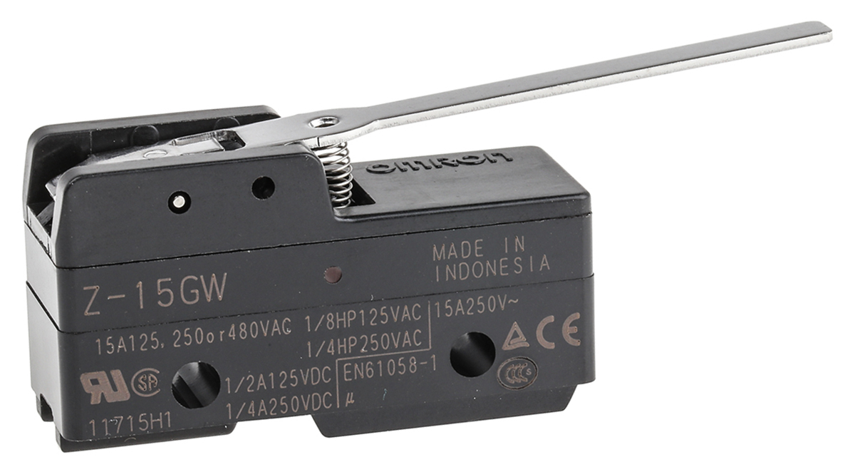 This is Lever Limit Switch NO/NC IP00 SPDT Thermosetting Resin Housing 500V ac Max 15A Max manufactured by Omron. The manufacturer part number is Z-15GW. It has 250v maximum DC voltage. A bespoke product carries 500v of maximum AC voltage. The product carries lever actuator. It also carries 15a maximum current. It is IP rated with ip00. The product z, is a highly preferred choice for users. Additionally, it performs a snap action type action . Its accurate length is 49.2mm. It has spdt pole and throw configuration. The product also features robust thermosetting resin housing material. Furthermore, the product is 29.4mm wide. The product comes in 17.45mm depth. The normal state configuration includes no/nc. The product also provide mechanical stability with 20000000operations. It has a maximum operating temperature of +80°c. Whereas, the minimum operating temperature of the product is -25°c. It allows solder connection type.