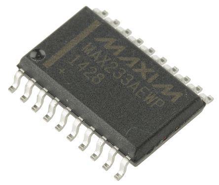 This is Line Transceiver 2-TX 2-RX 4.5 → 5.5 V 20-Pin SOIC manufactured by Maxim. The manufacturer part number is MAX233AEWP+G36. In addition, it has single ended type receiver signal . It has a maximum operating temperature of +85 °c. The given dimensions of the product include 13 x 7.6 x 2.35mm. The product is available in surface mount configuration. It is a type of single power supply. It includes 2 transmitters . Moreover, it exhibits single ended type transmitter signal . In addition, the height is 2.35mm. It has a typical single supply voltage of 4.5 → 5.5 v. Furthermore, the product is 7.6mm wide. Its accurate length is 13mm. The package is a sort of soic. Whereas, the minimum operating temperature of the product is -40 °c. It has a maximised data speed rate of 200kbps. Furthermore, it has 1 number of receivers per line . Whereas, it has 1 dedicated drivers per line . It contains 2 receivers . It complies with eia/tia-232, rs-232, rs-485, v.24, v.28 interface standards . It contains 20 pins.
