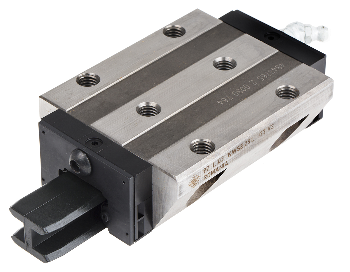 This is Linear Guide Carriage KWSE25 manufactured by INA. The manufacturer part number is KWSE25-L-V2-G3. It has 28000n dynamic load rating. It has 67000n static load rating. Additionally, it has a carriage of 70mm in width . It includes a carriage of 81.8mm in length . It is for rail width about 23mm . The product has a kwse25 manufacturer series.