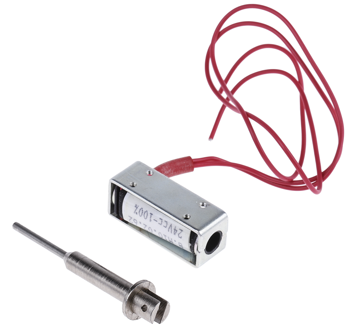 This is Push Pull Action DC D-Frame Solenoid 3mm stroke 2W 24 V dc manufactured by Mecalectro. The manufacturer part number is 8.M10 02 62 24 VCC 100%. Concerning its action options, it allows push pull action. Features 24 v dc supply voltage. It has about 3mm stroke maximum . The given dimensions of the product include 30 x 12.7 x 10 mm. It has the capability to hold 0.1n force.