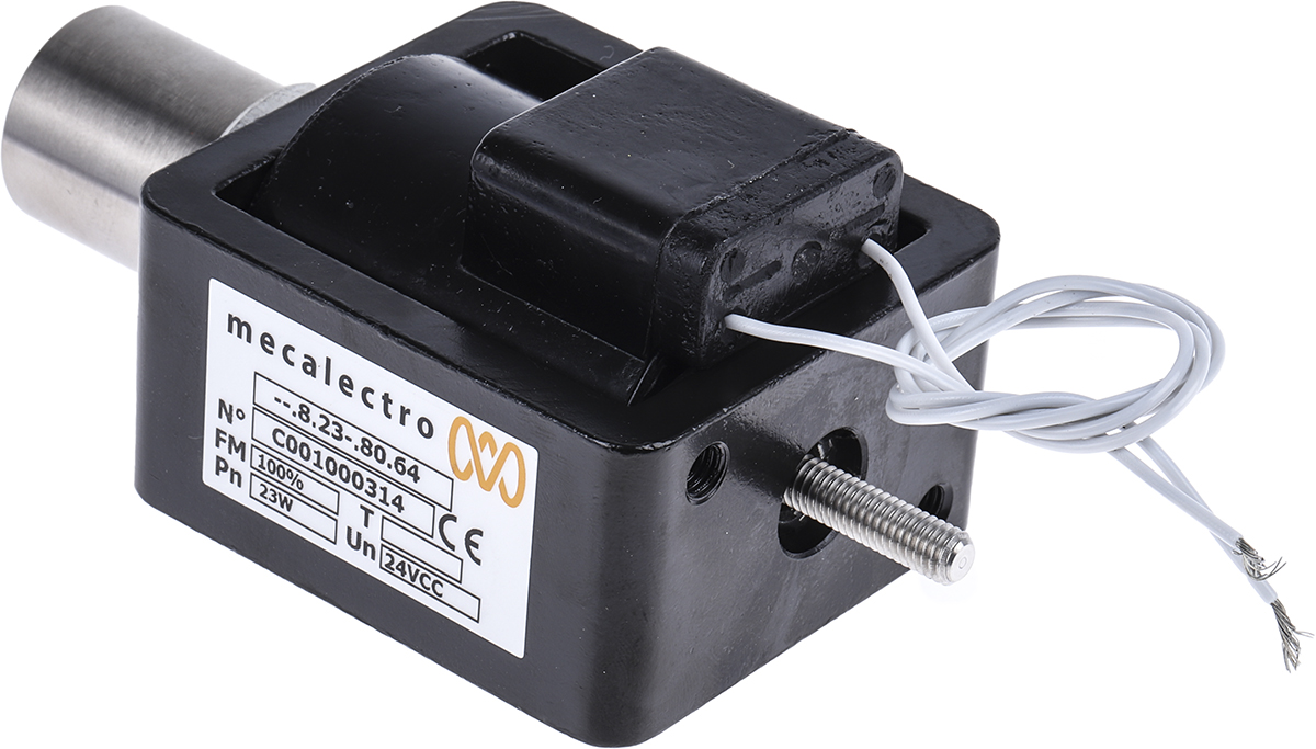 This is Push Pull Action Tubular Solenoid 15mm stroke 24 V dc 23W manufactured by Mecalectro. The manufacturer part number is 8238064-24VCC-100%. Concerning its action options, it allows push pull action. It has about 15mm stroke maximum . It has the capability to hold 18 → 80n force. Features 24 v dc supply voltage.