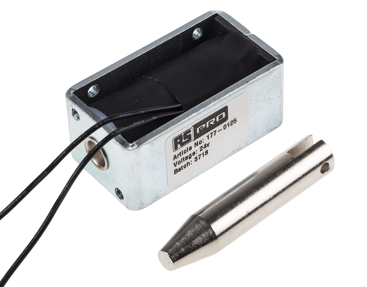 This is DC D Frame Solenoid 24v manufactured by RS Pro. The manufacturer part number is 177-0125. The product dc - d frame, is a highly preferred choice for users. Its accurate length is 58mm. Furthermore, the product is 25.4 mm wide. The product comes in 31.8mm depth. Concerning its action options, it allows pull action. linear solenoid is a versatile product designed to provide user-defined applications.