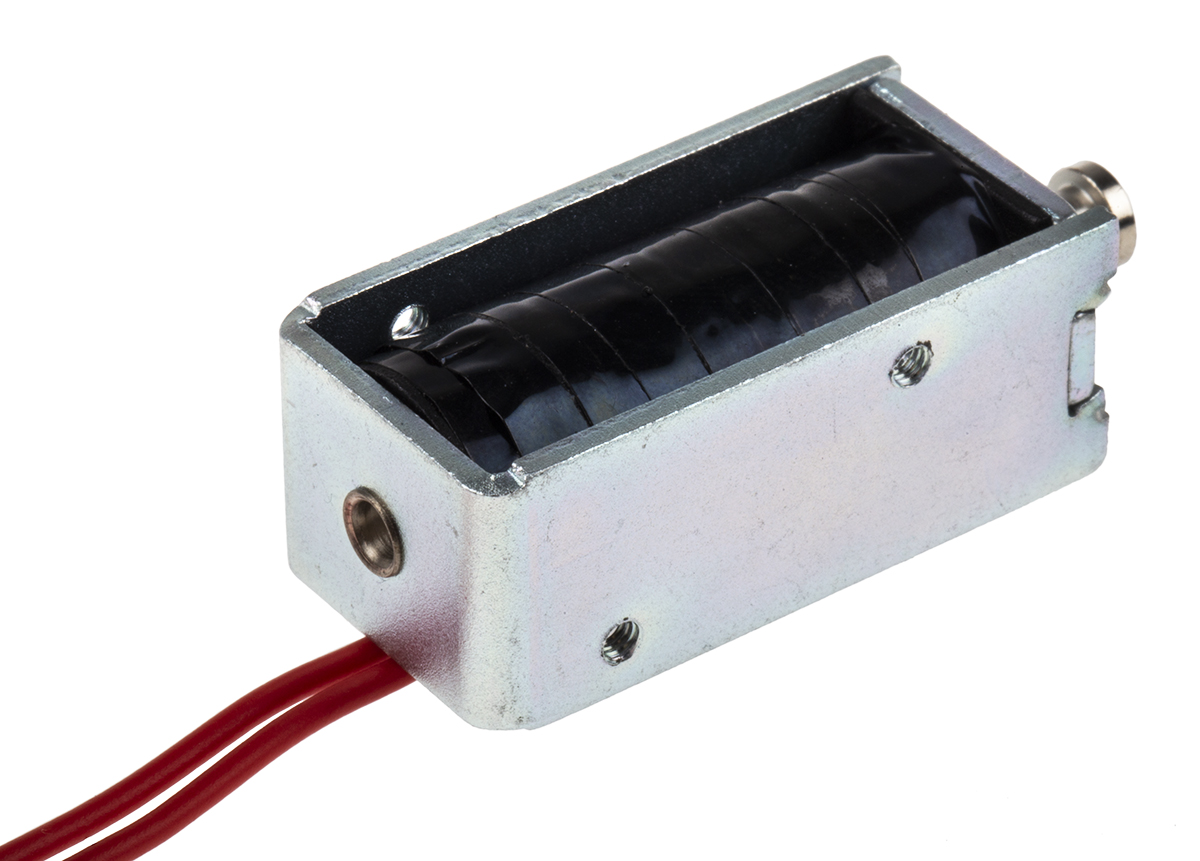 This is DC D Frame Solenoid 12v manufactured by RS Pro. The manufacturer part number is 177-0115. Concerning its action options, it allows pull action. The given dimensions of the product include 40 x 14 x 19 mm. Features 12 v dc supply voltage.