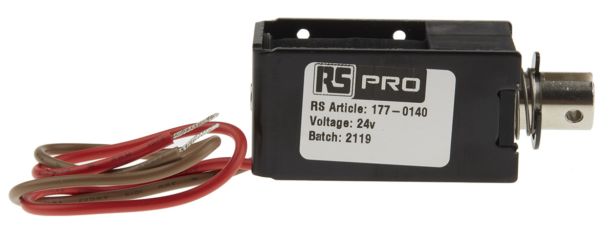 This is RS PRO Linear Solenoid Actuator 24 V 30 x 27 x 53.5 mm manufactured by RS Pro. The manufacturer part number is 177-0140. The product dc - d frame, is a highly preferred choice for users. Concerning its action options, it allows pull action. linear solenoid is a versatile product designed to provide user-defined applications. It has about 12mm stroke maximum .