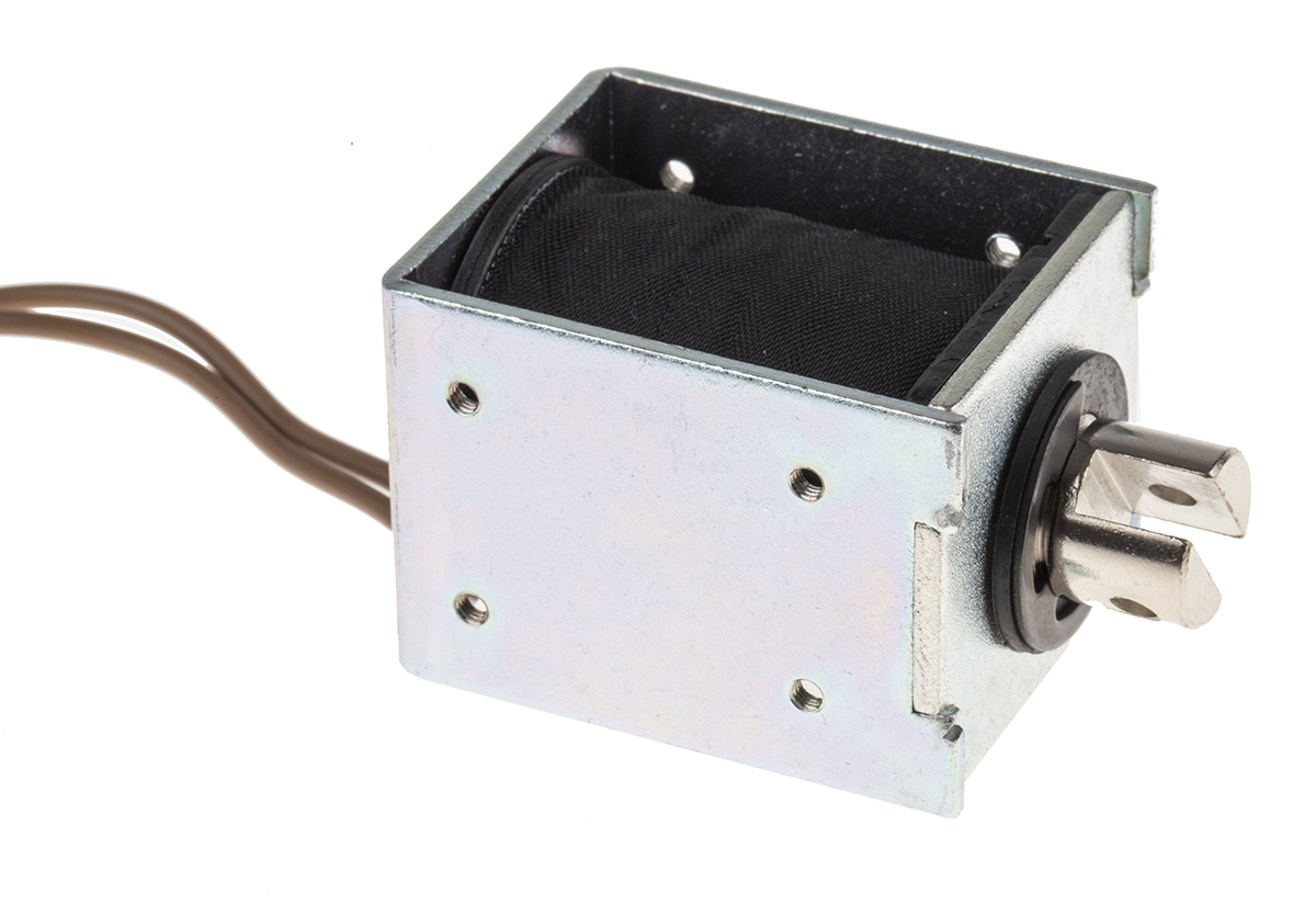 This is Pull Action DC D-Frame Solenoid 24 V manufactured by RS Pro. The manufacturer part number is 177-0130. Concerning its action options, it allows pull action. The given dimensions of the product include 50 x 37 x 41 mm. Features 24 v dc supply voltage.