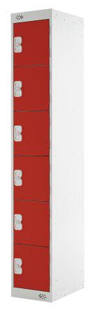 This is 6 Door Steel Red Industrial Locker 1800 mm x 300 mm x 450mm manufactured by RS Pro. The manufacturer part number is 521-425. It contains 6 dedicated doors . It has a decent red colour. The product is made from highly stable and reliable steel. It has an external depth of 450mm. While its external height is 1800 mm. The product is 300 mm wide.