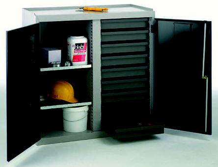 This is 2 Door Steel Grey Tool Locker 984 mm x 915 mm x 505mm manufactured by RS Pro. The manufacturer part number is 340-7482. It contains 2 dedicated doors . It has a decent grey colour. The product is made from highly stable and reliable steel. It has an external depth of 505mm. While its external height is 984 mm. The product is 915 mm wide.