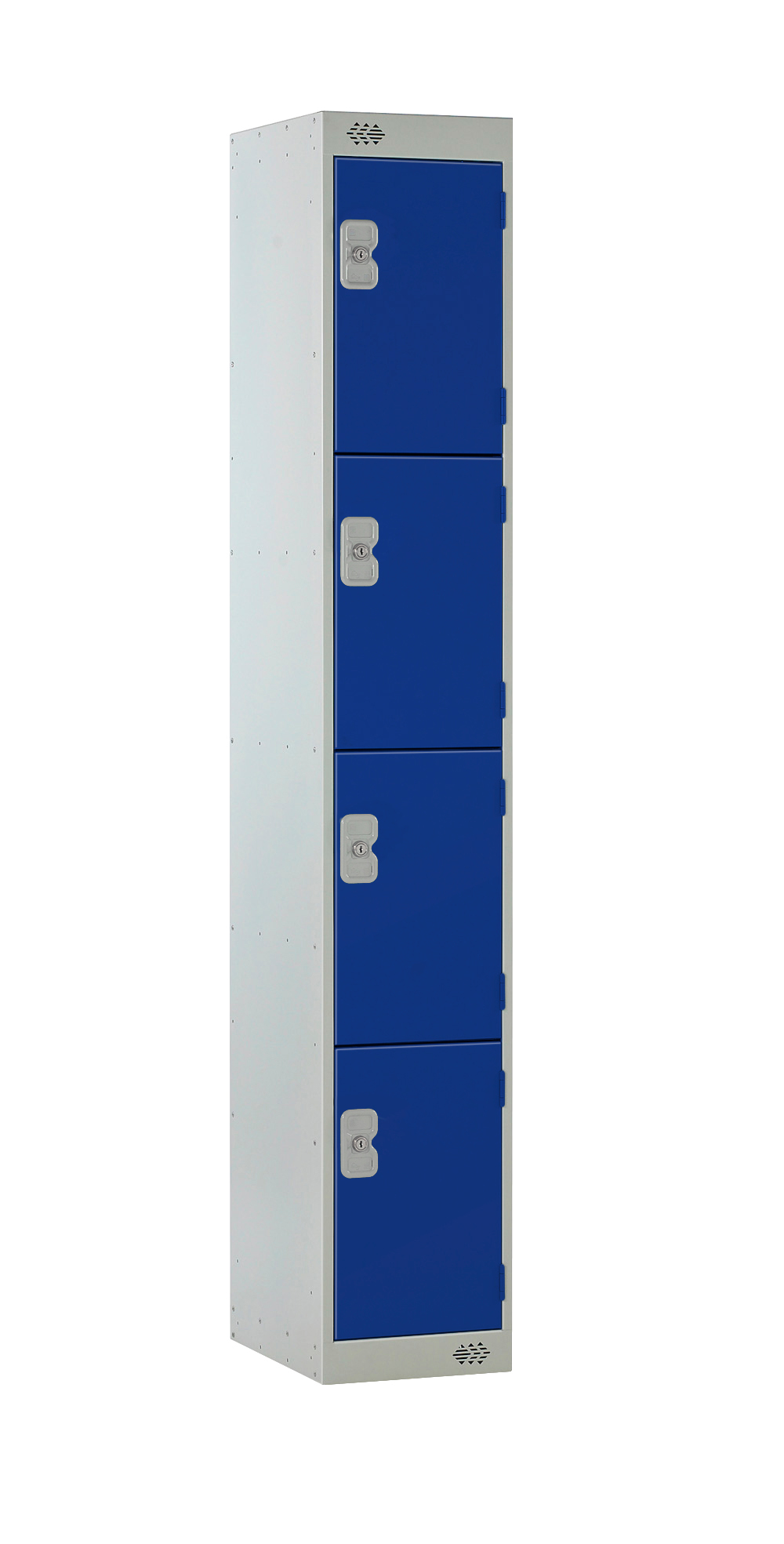 This is 4 Door No Steel Blue Locker 1800 mm x 380 mm x 450mm manufactured by RS PRO. The manufacturer part number is 213-469. It contains 4 dedicated doors . It has a decent blue colour. The product is made from highly stable and reliable steel. It has an external depth of 450mm. While its external height is 1800 mm. The product is 380 mm wide. In addition, it is vented no .